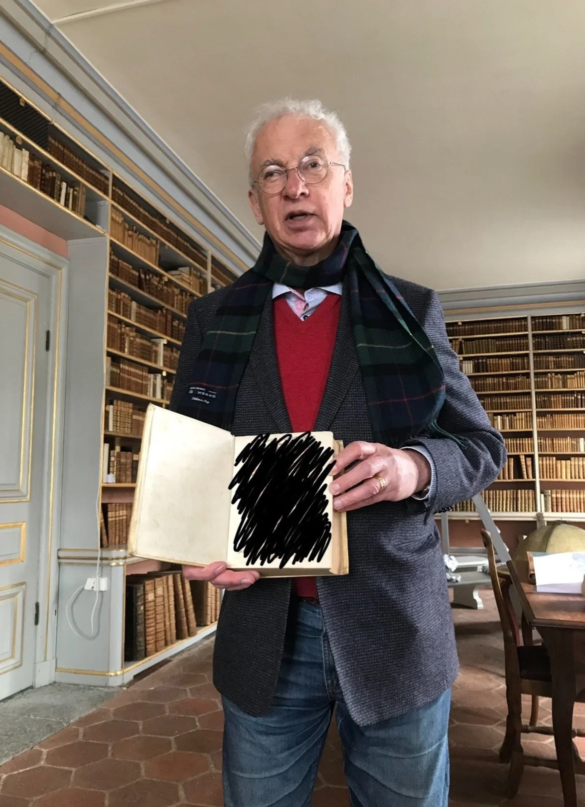 Erik Hamberg hade specialvisning för föreningens medlemmar av 1700-talsbiblioteket.